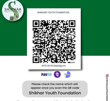 Donate now for an empowering rural India. Shikhar Youth Foundation is an 80G registered with the Government of India. Donations are eligible for an 80G income tax deduction. For donation, you can either use a bank account transfer or a UPI scanner below.