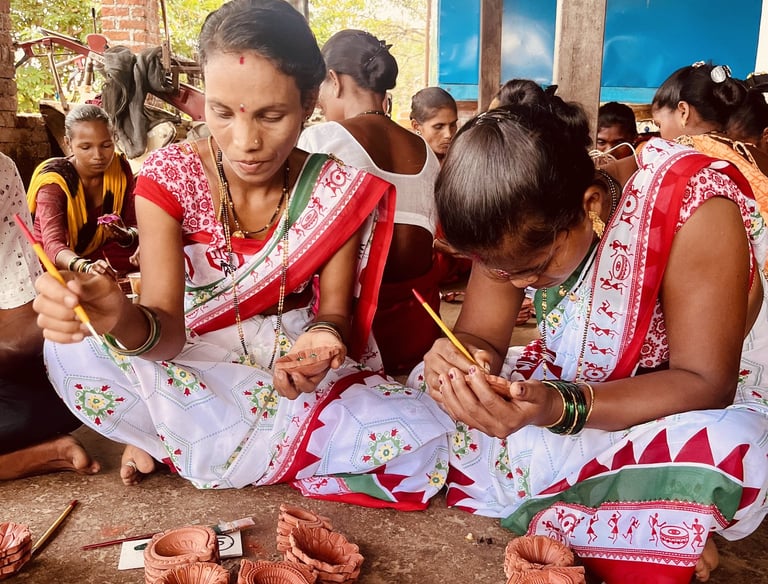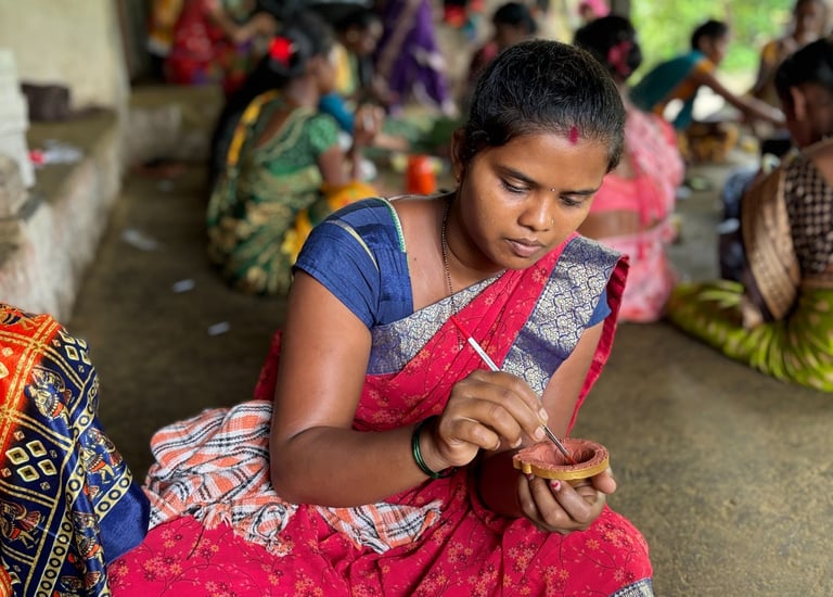 Empowering women in Rural India through various income-generating activities like the “Har Ghar Diya Project,” where women are trained to hand-paint Diyas.